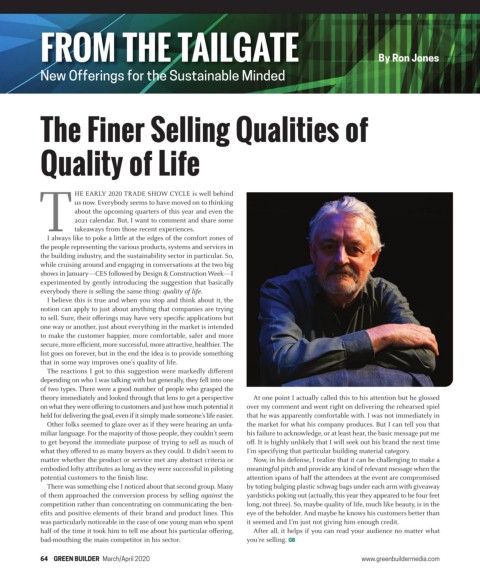64 GREEN BUILDER March/April 2020 www.greenbuildermedia.com