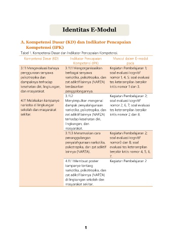 Kompetensi Dasar (KD) Indikator Pencapaian Muncul dalam E-modul