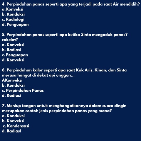 6. Perpindahan kalor seperti apa saat Kak Aris, Kinan, dan Sinta