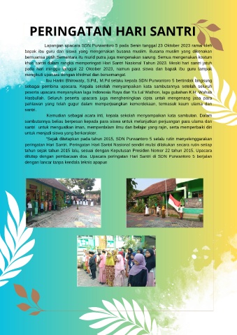 ditutup dengan pembacaan doa. Upacara peringatan Hari Santri di SDN Purwantoro 5 berjalan