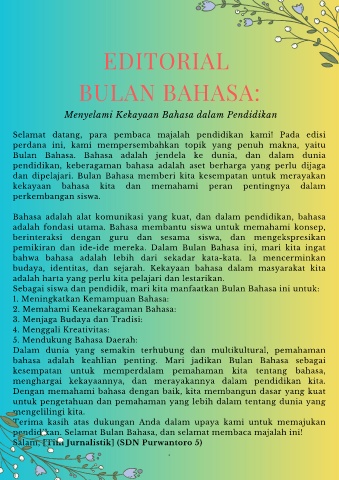 pendidikan. Selamat Bulan Bahasa, dan selamat membaca majalah ini!