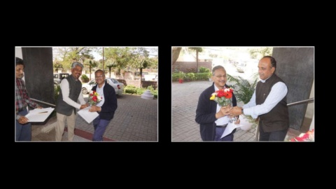 Director General, National Archives, New Delhi being welcomed by the officers of the Directorate on his arrival at the Directorate of Archaeological Archives and Museum, Bhopal.