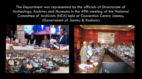 The Department was represented by the officials of Directorate of Archeology, Archives and Museums in the 49th meeting of the National Committee of Archivists (NCA) held at Convention Centre Jammu, (Government of Jammu & Kashmir)