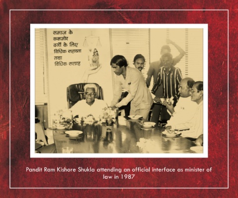 Pandit Ram Kishore Shukla attending an official interface as minister of law in 1987