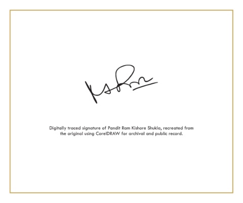 Digitally traced signature of Pandit Ram Kishore Shukla, recreated from the original using CorelDRAW for archival and public record.