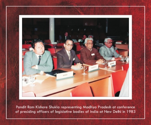 Pandit Ram Kishore Shukla representing Madhya Pradesh at conference of presiding officers of legislative bodies of India at New Delhi in 1983