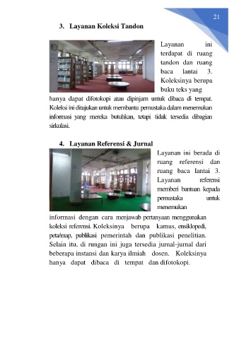 koleksi referensi. Koleksinya berupa kamus, ensiklopedi,