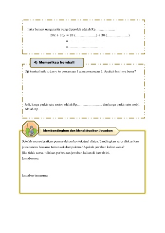 Jadi, harga parkir satu motor adalah Rp………………….. dan harga parkir satu mobil