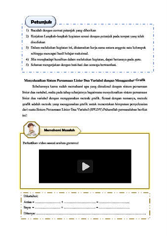 dari suatu Sistem Persamaan Linier Dua Variabel (SPLDV).Pahamilah permasalahan berikut
