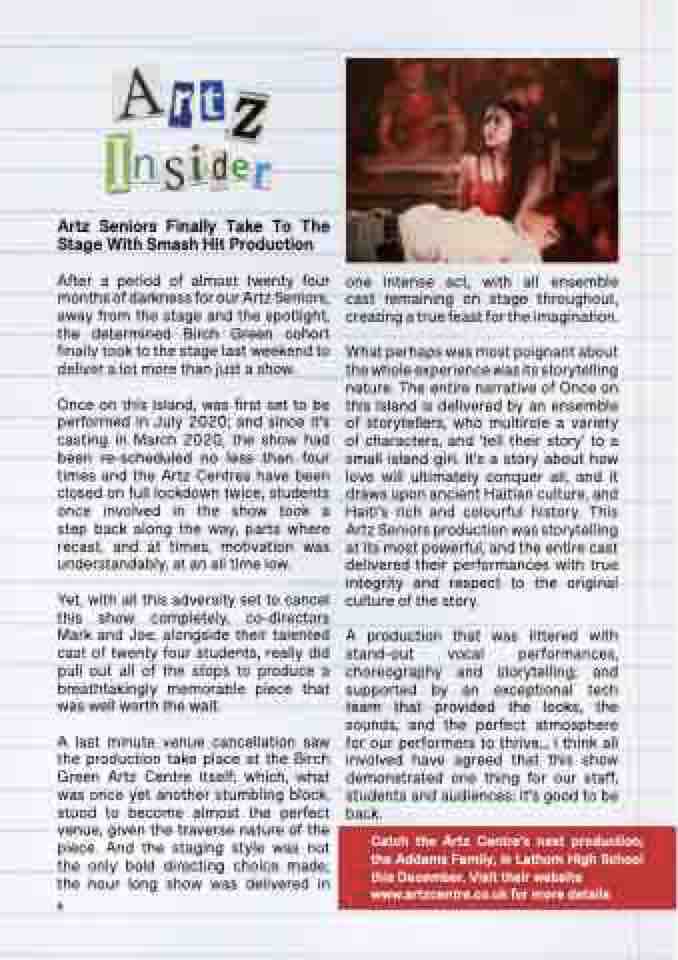 Catch the Artz Centre’s next production; the Addams Family, in Lathom High School this December. Visit their website www.artzcentre.co.uk for more details