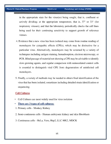 monolayers for cytopathic effects (CPEs), which may be distinctive for a