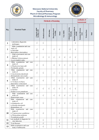 Computer-aided learning: a&b Practical sessions Self-learning Simulation based Learning Demos Case studies Collaborative learning Role play Practical examination & tutorial Periodical Mid-term exam Written Exam Oral