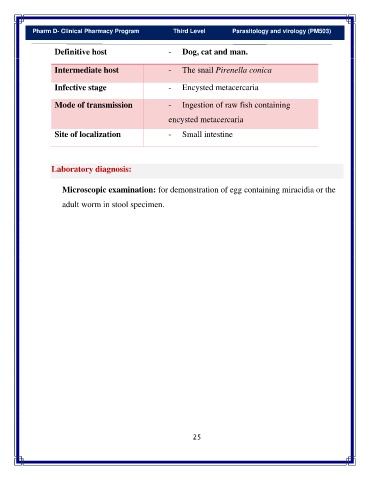 Pharm D- Clinical Pharmacy Program Third Level Parasitology and virology (PM503)