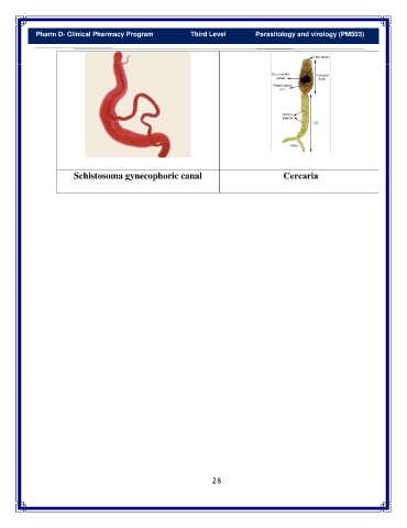 Pharm D- Clinical Pharmacy Program Third Level Parasitology and virology (PM503) Schistosoma gynecophoric canal Cercaria 28