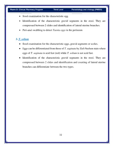 Pharm D- Clinical Pharmacy Program Third Level Parasitology and virology (PM503)