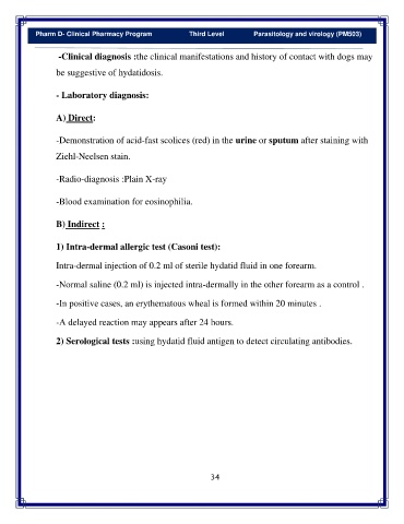 Pharm D- Clinical Pharmacy Program Third Level Parasitology and virology (PM503)