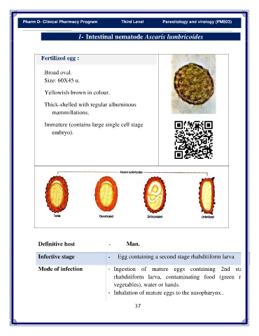 Pharm D- Clinical Pharmacy Program Third Level Parasitology and virology (PM503)