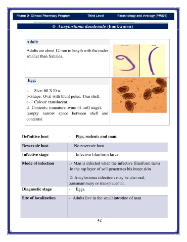Pharm D- Clinical Pharmacy Program Third Level Parasitology and virology (PM503)