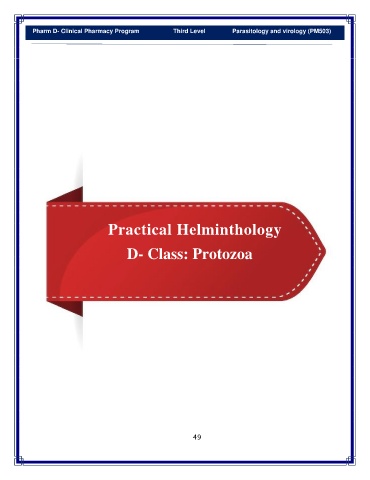 Pharm D- Clinical Pharmacy Program Third Level Parasitology and virology (PM503) Practical Helminthology D- Class: Protozoa 49