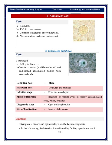 Pharm D- Clinical Pharmacy Program Third Level Parasitology and virology (PM503)