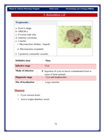 Pharm D- Clinical Pharmacy Program Third Level Parasitology and virology (PM503)