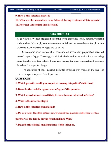 Pharm D- Clinical Pharmacy Program Third Level Parasitology and virology (PM503)
