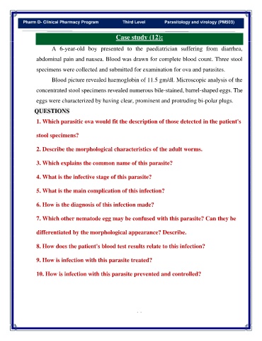 Pharm D- Clinical Pharmacy Program Third Level Parasitology and virology (PM503)