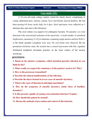 Pharm D- Clinical Pharmacy Program Third Level Parasitology and virology (PM503)