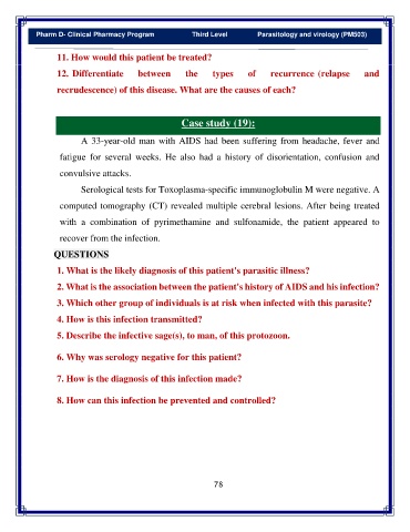 Pharm D- Clinical Pharmacy Program Third Level Parasitology and virology (PM503)