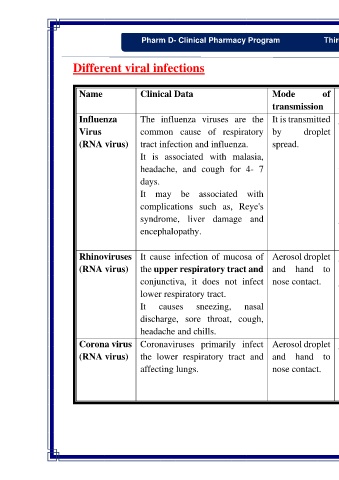 Pharm D- Clinical Pharmacy Program Third Level Parasitology and virology (PM503)