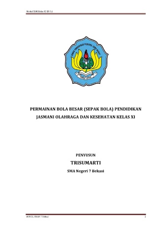 Modul PJOK Kelas XI KD 3.1 PERMAINAN BOLA BESAR (SEPAK BOLA) PENDIDIKAN JASMANI OLAHRAGA DAN KESEHATAN KELAS XI PENYUSUN TRISUMARTI SMA Negeri 7 Bekasi @2021, SMAN 7 Bekasi 2