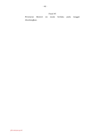 - 62 - Pasal 65 https://www.ainamulyana.com/2022/05/permenpan-rb-nomor-16-tahun-2022.html Peraturan Menteri ini mulai berlaku pada tanggal diundangkan. jdih.menpan.go.id