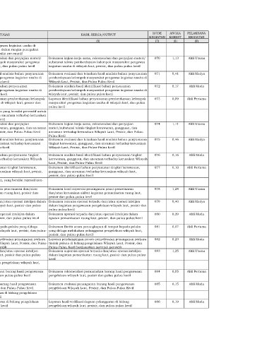 pesisir, dan pulau-pulau b Melakukan evaluasi dan telaahan hasil analisis bahan penyusunan Dokumen evaluasi dan telaahan hasil analisis bahan penyusunan 071 0,41 Ahli Madya