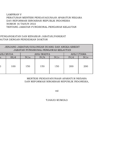 JABATAN FUNGSIONAL PENGAWAS KELAUTAN DENGAN PENDIDIKAN DOKTOR