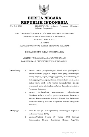 No. 511, 2022 KEMENPAN-RB. Asisten Pengawas Kelautan.