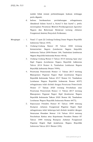 Mengingat : 1. Pasal 17 ayat (3) Undang-Undang Dasar Negara Republik