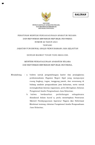 PERATURAN MENTERI PENDAYAGUNAAN APARATUR NEGARA