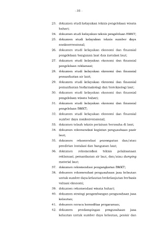 33. dokumen telaah teknis perizinan berusaha di laut;