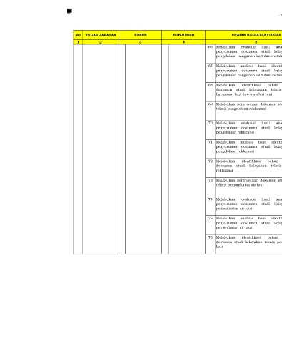 71 Melakukan analisis hasil identifikasi bahan Laporan analisis bahan penyusunan studi 079 0,56 Ahli Muda