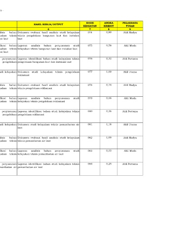 71 Melakukan analisis hasil identifikasi bahan Laporan analisis bahan penyusunan studi 079 0,56 Ahli Muda