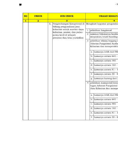 e. Lamanya antara 81 - 160 jam Sertifikat/Laporan 2,00 Semua Jenjang