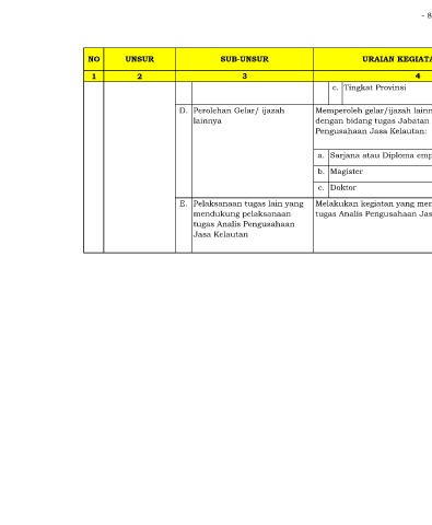NO UNSUR SUB-UNSUR URAIAN KEGIATAN/TUGAS ANGKA KREDIT