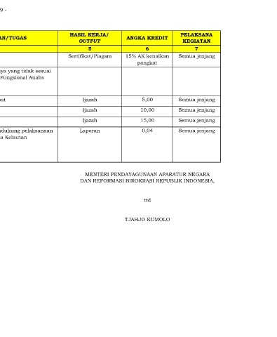 lainnya dengan bidang tugas Jabatan Fungsional Analis