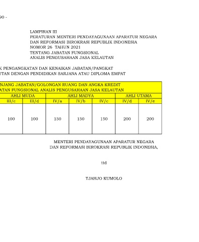 JABATAN FUNGSIONAL ANALIS PENGUSAHAAN JASA KELAUTAN DENGAN PENDIDIKAN SARJANA ATAU DIPLOMA EMPAT