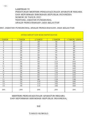 ANGKA KREDIT KUMULATIF UNTUK PENYESUAIAN/INPASSING JABATAN FUNGSIONAL ANALIS PENGUSAHAAN JASA KELAUTAN