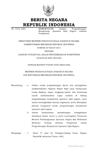No. 1012, 2021 KEMENPAN-RB. Analais. Pengembangan.