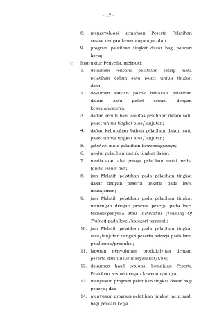 8. mengevaluasi kemajuan Peserta Pelatihan