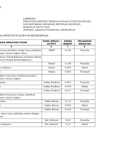RINCIAN KEGIATAN JABATAN FUNGSIONAL INSTRUKTUR KATEGORI KETERAMPILAN