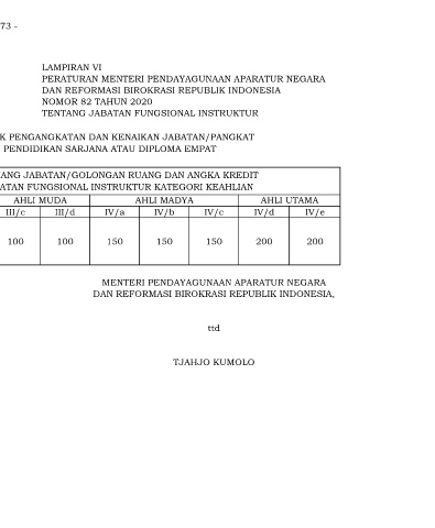JUMLAH ANGKA KREDIT KUMULATIF MINIMAL UNTUK PENGANGKATAN DAN KENAIKAN JABATAN/PANGKAT