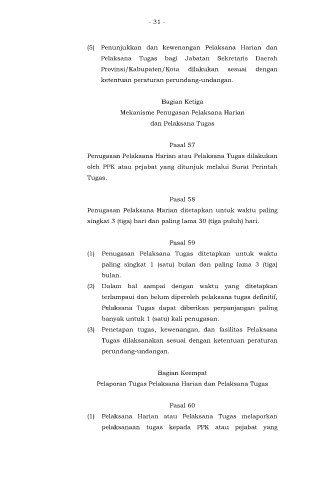 (5) Penunjukkan dan kewenangan Pelaksana Harian dan
